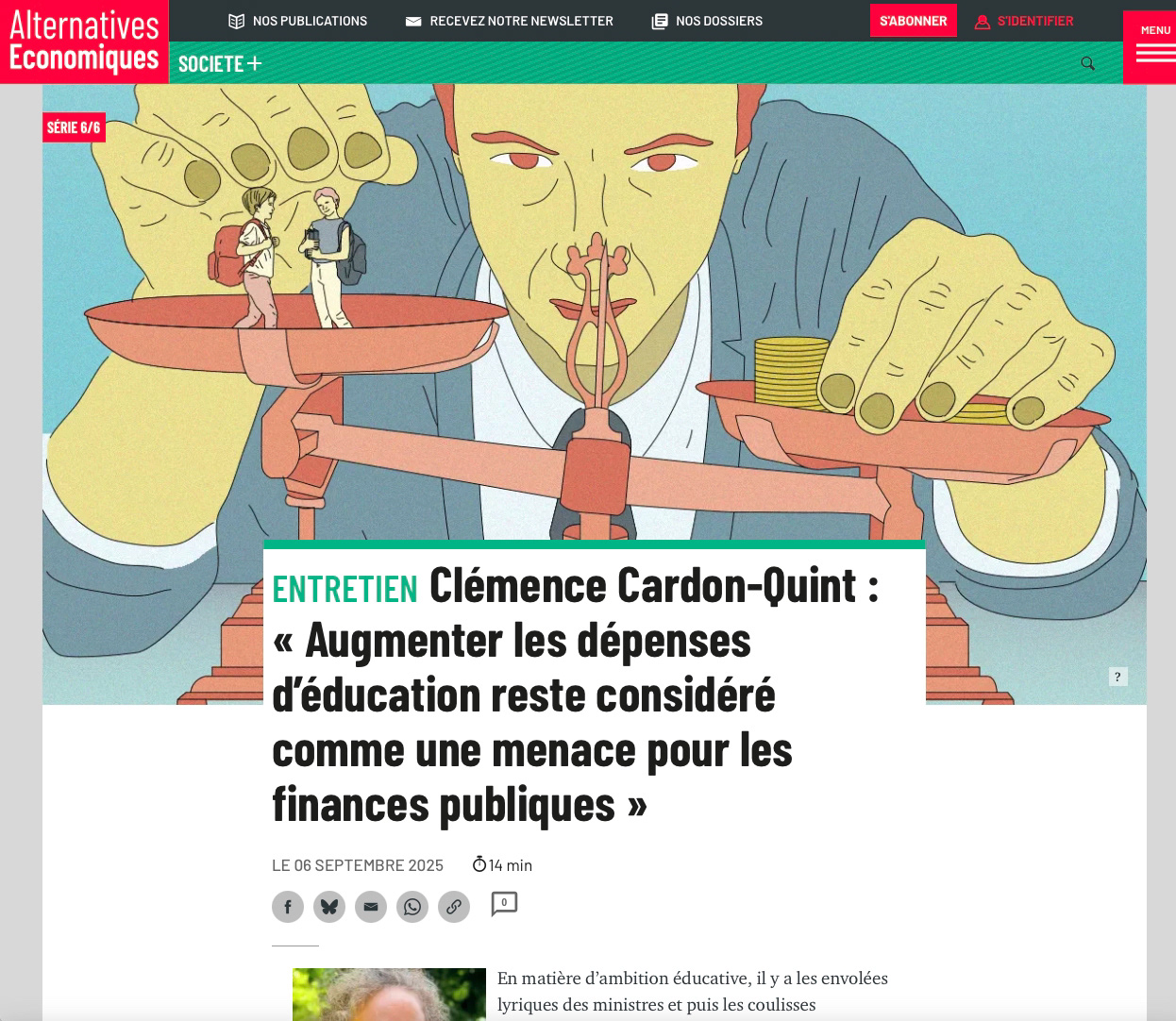 Illustration de l'article consacré "aux dépenses de l'éducation", réalisée pour le journal en ligne Alternatives Économiques daté du 06 septembre 2025.