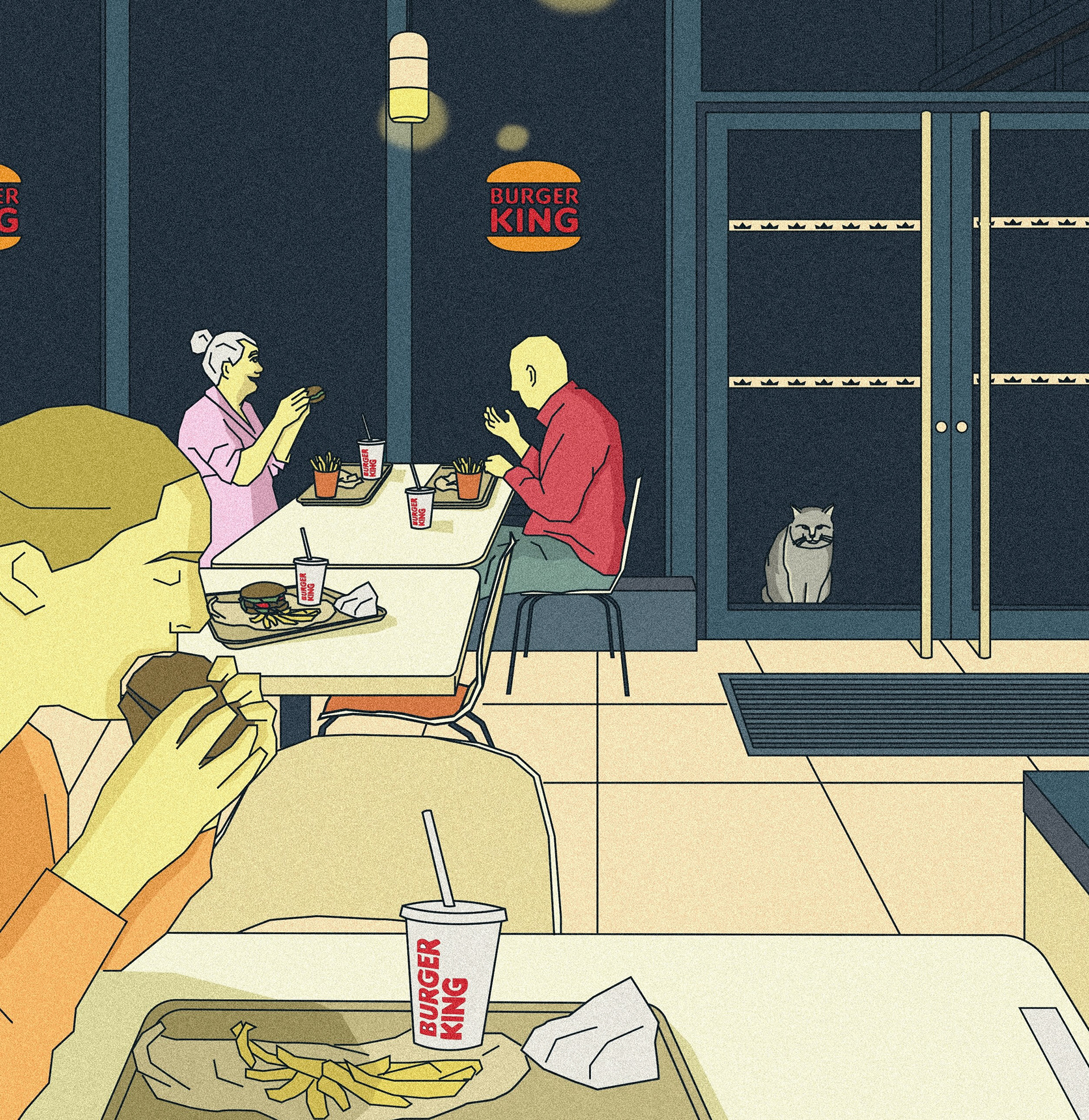 Vous n'avez sûrement jamais été manger au Burger King de la petite ville de Thouars. Moi, je m'y suis arrêté, et à l'entrée se trouvait un chat mâle qui miaulait et réclamait des caresses. Un serveur m'a expliqué qu'il s'agit d'un chat errant habitué à venir devant la porte sans jamais entrer. Les employés le nourrissent et lui apportent des soins, même si le pépère ne se laisse pas attraper.