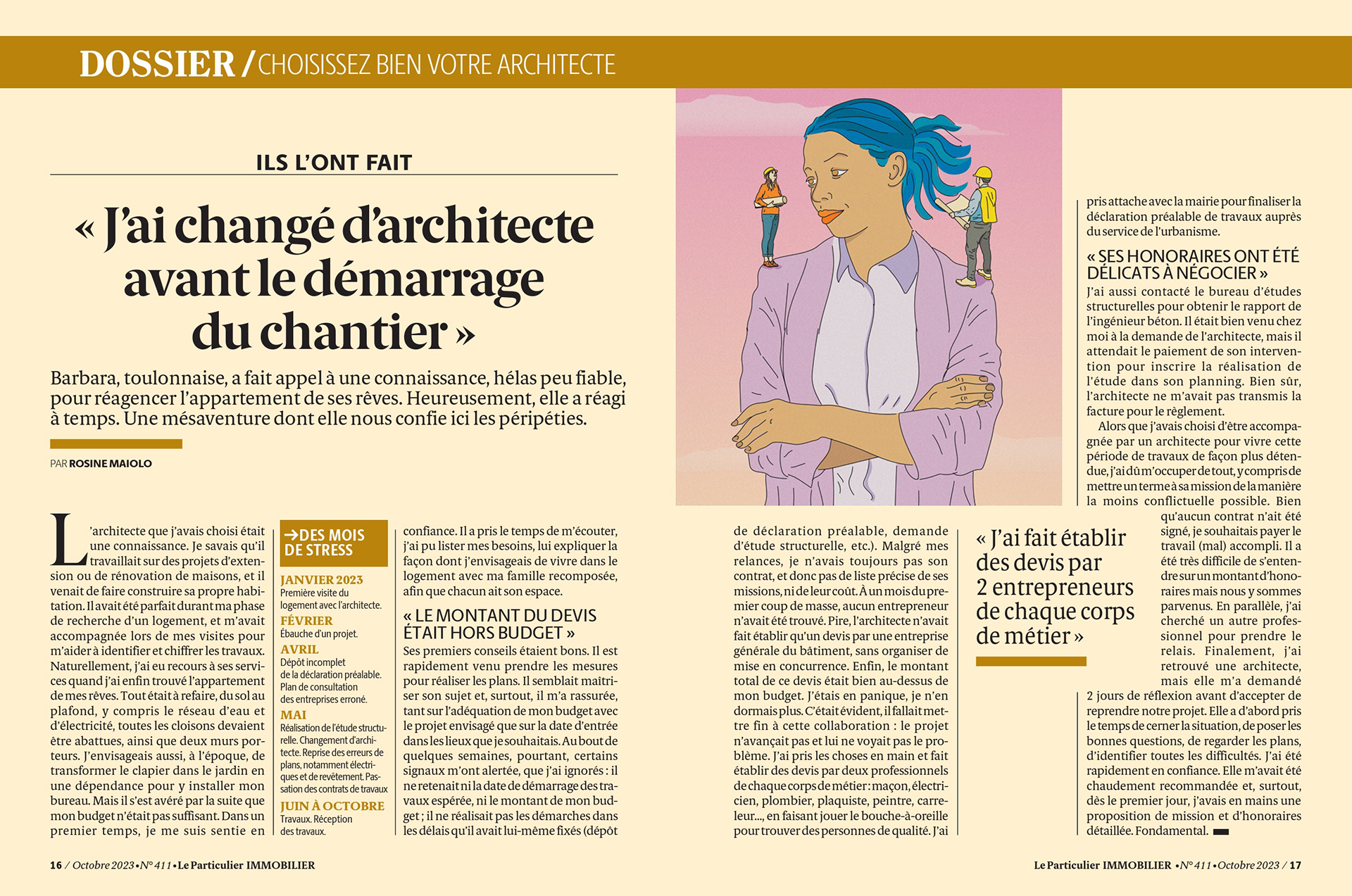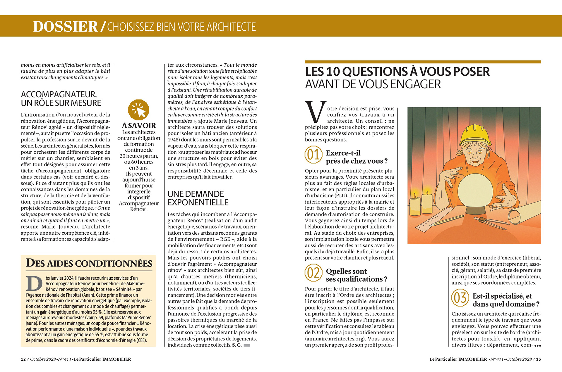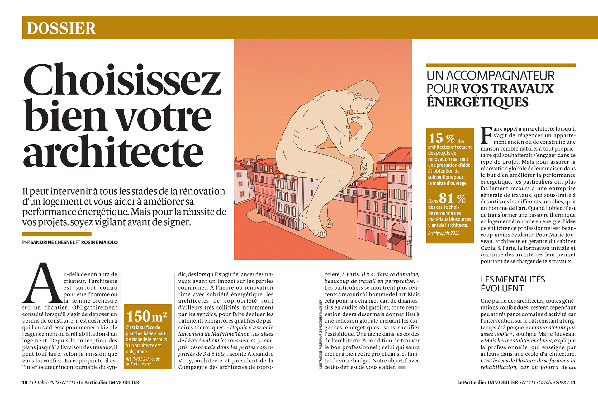 Illustrations for the magazine Le Particular Immobilier dedicated to architects. October 2023.