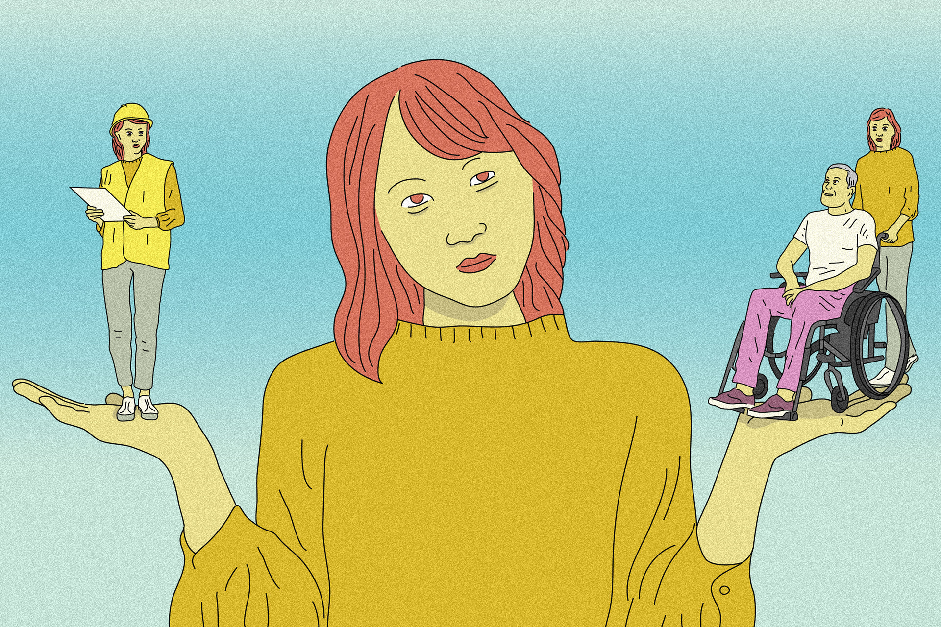 Illustration de l'article consacré au "Salariés aidants", réalisée pour le journal
